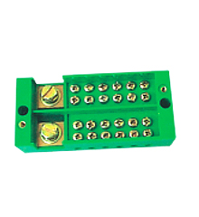 材料采用聚碳酸酯阻燃, 导电构件采用条铜块分线孔双螺钉压接技术,保证连接导线可靠,额定交流电压500V,分户连接截面 4~10mm2 ,总线截面10~50mm2 ,适用于住宅使用的电表箱分线连接,也适用小型单相计量的经营生产场所的开关板的表箱连接。