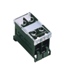 引进型端子,壳体采用热固性塑料或 DMC 聚酯塑料。耐高温、 抗老化,工作电压交流600V,连接导线截面积 0.25~200mm2 , 大电流导电板压接螺丝采用双用型,同时上面均加盖聚酯透明防尘盖,安全可靠。由于采用了模数化设计,可分单极、二极和三极一体化,TH35mm导轨安装,两端使用加固件更加可靠。